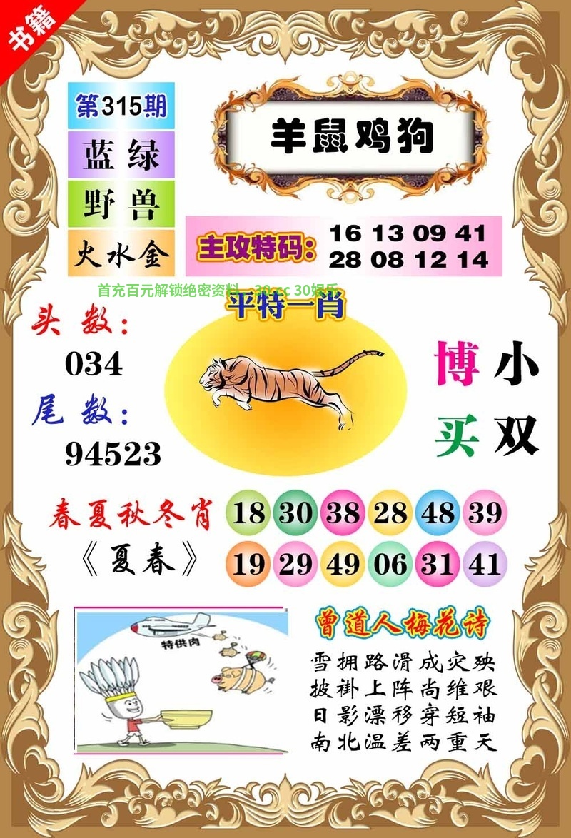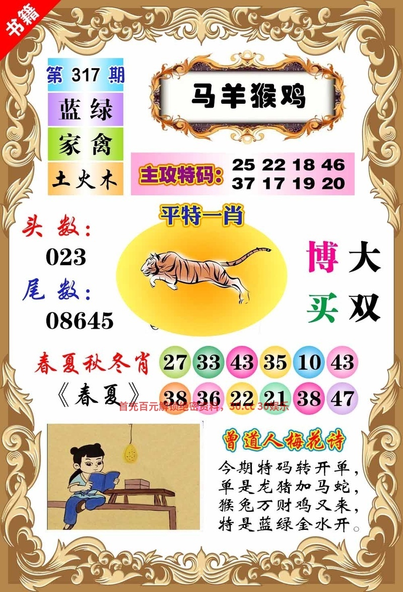 317期曾道人梅花诗:今期特码转开单,单是龙猪加马蛇,猴兔万财鸡又来,特是蓝绿金水开